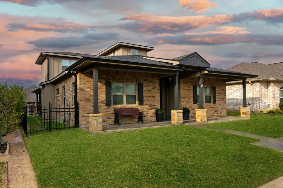 Gorgeous 4-bedroom 3 bath traditional urban style home located in sought after Briarcrest West. The spacious living area features vaulted ceilings with stylish staircase and fireplace with many wood trim elements. Kitchen offers custom cabinets, stainless appliances, and granite waterfall island. Primary bedroom is on first floor with on suite boasting an oversized shower & soaking tub. 4th bedroom or study is located also on the first floor with two bedrooms up sharing an oversized bathroom. Exterior features rear entry garage and large covered patio for entertaining guests. Low HOA fee and short commute to local restaurants and shopping. Dont miss your chance to acquire this well-kept beauty in the heart of Bryan.