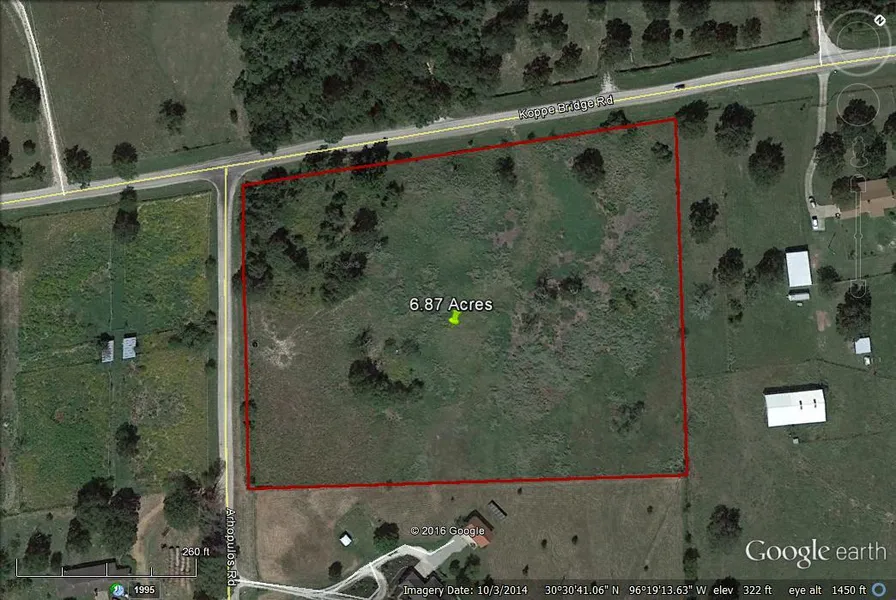 Great corner tract at Koppe Bridge Road and Arhopolus Road in the Wellborn Area of College Station. This tract has large scattered oaks and is in improved grass. Perfect location for that new home and horse operation. Wellborn Water is at the front of the property. 15 minutes to TAMU and Kyle Field. Don't miss this one.