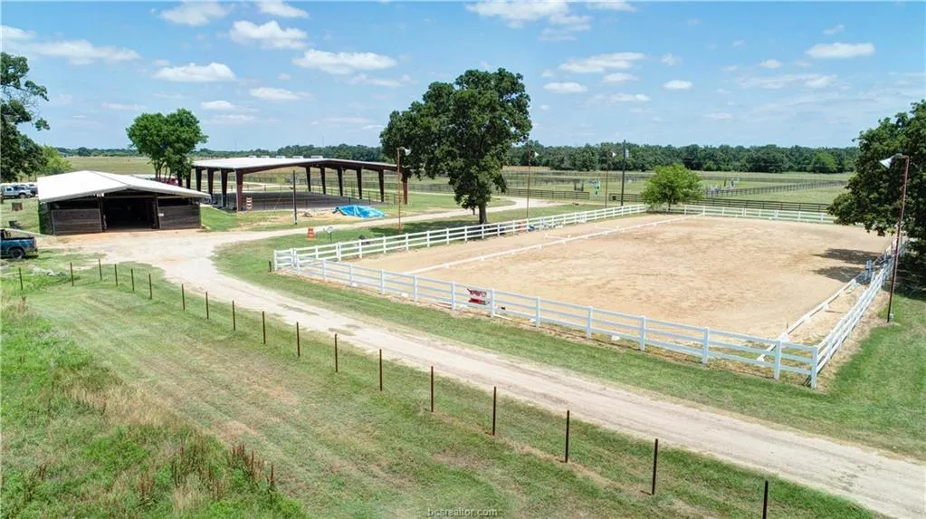Turn-key equestrian facility on 31+/- acres only 14 miles to Texas A&M University. Currently a thriving hunter/jumper and dressage training and boarding facility, this property features a 22 stall horse barn, covered riding arena, outdoor lighted arena, grass jumping arena, turnout paddocks with premium fencing, and round pen. Two 3BR/2BA brick residences, one with indoor pool. Three outbuildings, one being converted back to overflow stabling, other storage, and hay barn. Scattered oaks, and a pond. Too many features to list, contact agent for property information packet.