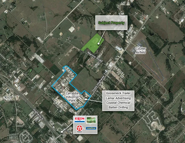 Rare large acreage tract less than one mile from Highway 21. Less than two miles from Highway 6. No zoning - outside city limits. Near a growing industrial corridor. Wickson Creek Water and BTU Electric available.