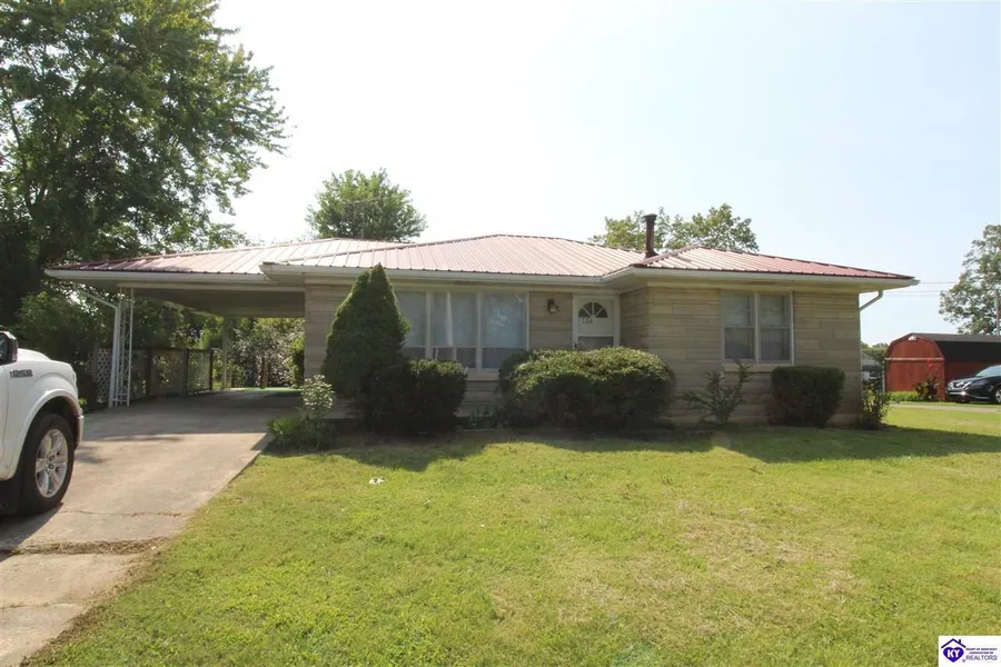 PENDING -Seller is Accepting Back Up Offers. Country charmer has fenced back yard to play in. Bedford Stone exterior with metal roof for peace of mind. Gas heat and central air for year round comfort. Attic has special insulation blanket to keep your utility bills comfortable too. Dining area has built in cabinet for extra storage. Set up for 2 bedrooms on main level and 2 rooms used as bedrooms in basement you also have living room on main level and family room in basement.