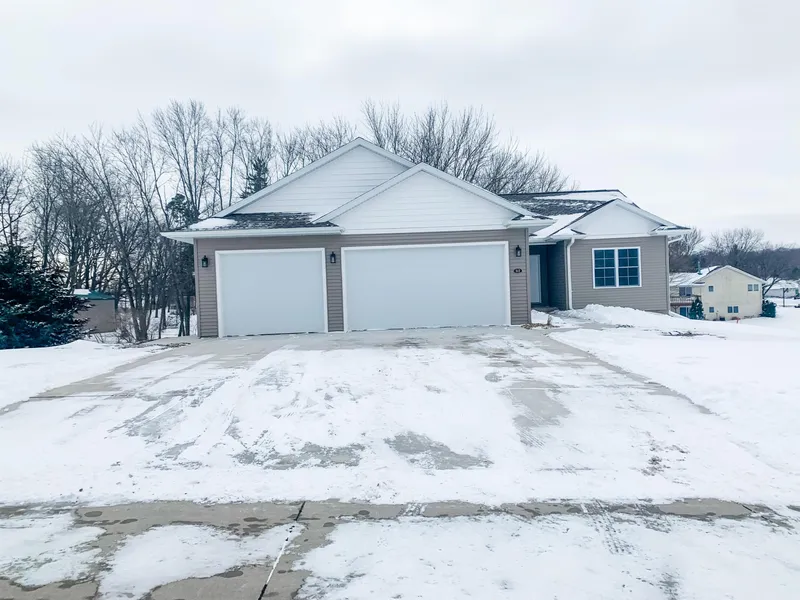 The newly-built home features the desirable open concept floor plan with the living room, dining area and kitchen all seamlessly connected. The large kitchen offers granite counters, a spacious bar area for eating or entertaining and lots of cabinet and counter space. The primary suite includes tray ceilings in the bedroom, double vanity in the bathroom, a walk-in closet and a main-floor laundry room. The are two more bedrooms on the main level, a 2nd bathroom & mud room. The sun-lit walk-out lower level is ready for you to finish to your liking and has been framed for a spacious family room with sliding doors to a concrete patio, 2 more bedrooms and a 3rd bathroom is stubbed out. A 2nd laundry room for the home has already been finished in the basement. A generous-sized utility & storage room finish out the lower level. This home is situated on a 0.35 acre lot with mature trees in the b...