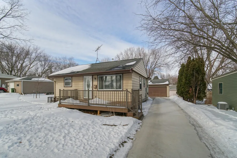 Cute and cozy home! You will enjoy the beautiful new maintenance free front deck as soon as spring hits! The nice sized living room features bright front window and built in bookcase. The newer kitchen with white cabinets is sure to please with all appliances included as well as breakfast nook! The bathroom has been updated with tile shower and stackable laundry on main level (or you can use the laundry in lower level). 2 bedrooms round out this area. Heading to lower level, you will find a huge family room or office space, half bath, and non conforming 3rd bedroom. New mechanicals too! The real gem of this home is the oversized 3 stall HEATED garage!