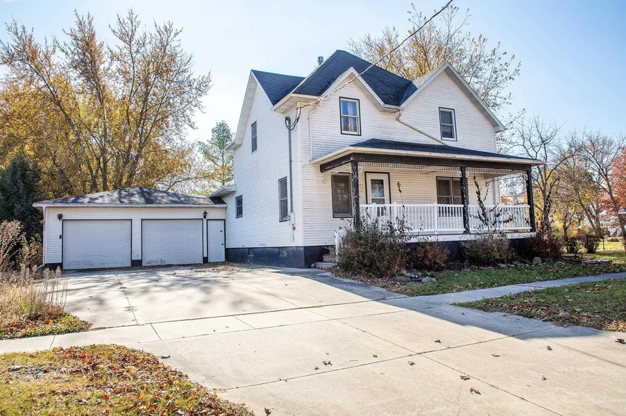 This porch is a must see as you approach this home. When you walk into the home you'll see the living room which is open to the staircase up to the 3 bedrooms upstairs and the spacious one 3/4 bathroom. It also leads into the main floor bedroom with double closets. The kitchen leads to the back door and garage and the basement. The yard it so beautiful. Has landscaping in backyard along with a patio and blocked by the one side of the 2 stall oversized garage. Come check this out.