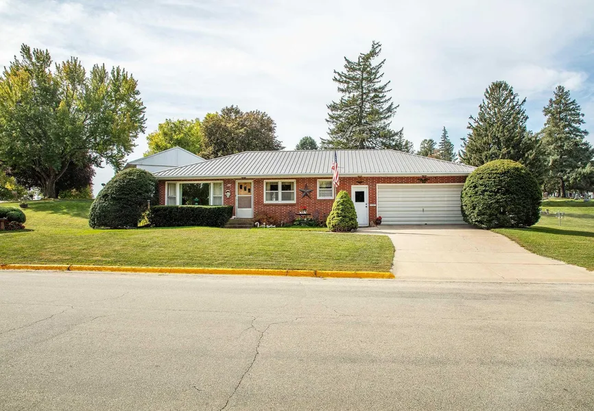This charming all-brick ranch with a large 2- stall attached garage and newer metal roof has been extremely well-maintained and overlooks a parkway with bike-trail access. It is conveniently located near an elementary school, the 218 corridor for an easy commute, soccer fields, nature areas and has easy access to shopping and restaurants. Inside you will find the living room receives great natural light from the large picture window and flows nicely into the the kitchen and dining area. The kitchen boasts tons of cabinet space, going all the way to the ceiling, with neutral toned counters and poured Torginol floors. The spacious bedrooms both include double closets with shelving and built-in drawers. The storage space throughout the home and garage is plentiful with numerous closets and cabinets. The unfinished basement is very clean and open. It houses the washer & dryer, the 3/4 bathroom and even has a secure shelter area for storms. The backyard showcases a garden area and a 352 sq ft metal shed with concrete floors and electricity. This one is a must-see!