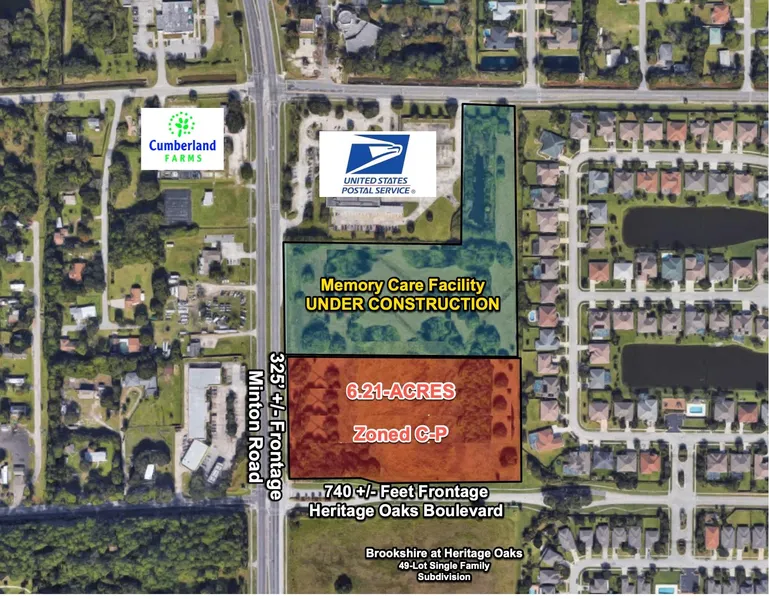 with 350'' +/- Minton Road frontage and 740'' +/- Heritage