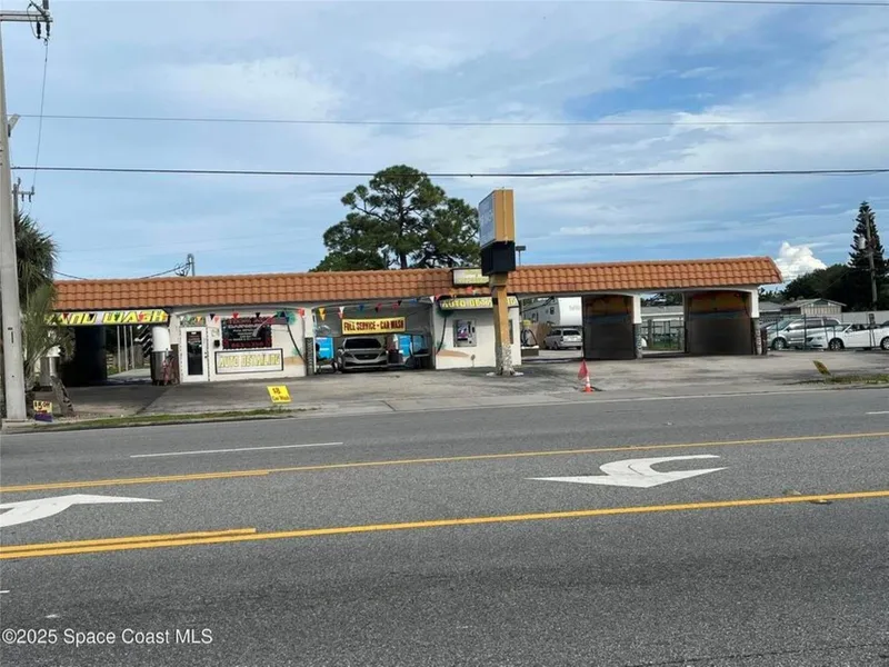 Rare opportunity to own a prime commercial property in the heart of Merritt Island! This 0.43-acre lot is centrally located in a high-traffic area, surrounded by a dense mix of residential neighborhoods and thriving commercial businesses. Currently operating as a car wash, this sale includes the land and building only—the business itself is not for sale. The property features four bays total: three self-service bays and one blower-equipped bay that is auto-drive system adaptation ready, complete with three-phase power, plumbing, and drain systems in place. Property Features: *Vacuum Stations: 2 double vacuums, 1 air/vac, and 1 shampoo/vac *Signage: Digital marquis for high visibility and advertising * Security: Closed-circuit security camera system with display * Detailing Area: 2-car covered detailing space * Office Space: Climate-controlled office under air. $$$ Owner Financing Availab...