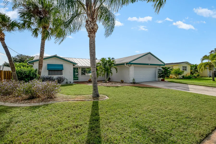 WIDE DEEP CANAL FRONT home w/ a POOL, BOAT LIFT, & DOCK! Beautifully landscaped with mature palm trees and curved flower beds. Huge mstr bdrm w/ tray ceiling & office space overlooking the canal. Mstr bath features a jetted soaking tub & a walk-in shower. The energy efficient metal roof provides you years & years of worry free maintenance and/or replacement. Gorgeous brick wood burning fireplace for those occasional chilly nights. Murphy bed in 2nd bdrm conveys. Kick back and relax on your very own sun deck sipping your beverage of choice. This tropical paradise awaits you.