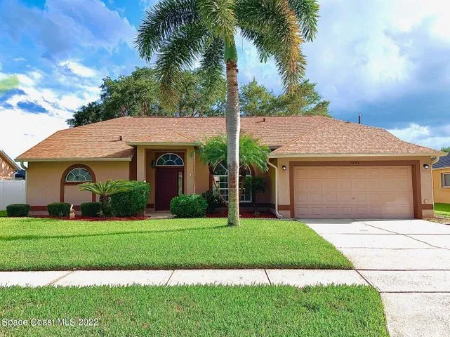 PRICED TO SELL! Move in ready, beautiful 3 bed 2 bath split floorplan LAKEFRONT property! Welcoming spacious formal living and dining rooms. Transferrable warranties on the 8/2019 roof (10 YR), 12/2021 AC (5 YR), 9/2022 gas powered hot water heater (3 YR) and 9/2022 living room, dining room, master bed and bath neutral tone flooring (LIFETIME)! Enjoy peaceful flowing WATER VIEWS and wildlife every day from your screened in porch, master bed, eat in kitchen, breakfast bar and family room with sloped ceiling. Master bath features updated granite double-sink vanity, walk in closet, tub and shower. Low annual HOA, gas range, security system, expanded attic space for storage, hurricane shutters, reclaimed water sprinklers, plenty of room for a pool, easy access to I-95, Viera, NASA and more!