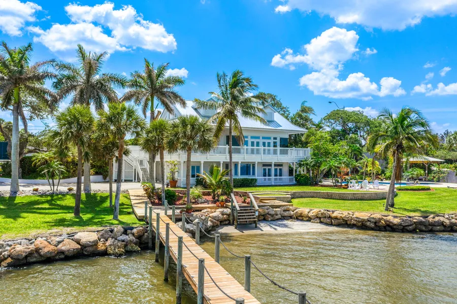One of a kind, Riverfront property in Brevard County featuring over 420 feett and 1.1 acres of direct River frontage in an ultra convenient location near all things Space Coast. Live your best waterfront life enjoying the nature shows and dramatic skies that will unfold daily from this charming, West Indies inspired home, it's expansive outdoor living areas & resort size, waterfront pool. Recent upgrades include; a new, long lasting Metal Roof & appliances (2020), main A/C (2021) new entry gate, private dock and 420'+ rock revetment/seawall (2022). Can be sold turn key, so just bring your toothbrush to closing! Current owners mostly use as a high performing vacation rental, so you could also start having it pay for itself on day 1. Don't let this one slip away..