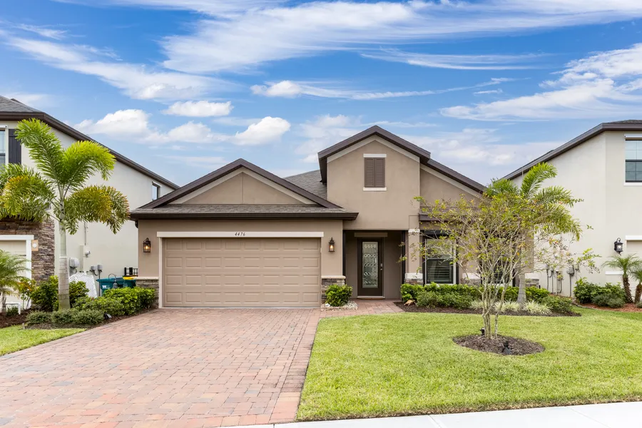 A far cry from ''builder basic'' these sellers have made beautiful additions to an already stunning Glenhurst home by DR Horton. Tucked away in the prestigious gated community of Sawgrass Lakes, well known for its excellent amenities like tennis courts, a fitness center, and community pool with a water slide, this family friendly neighborhood has something for everyone. Bright and airy you'll love the vaulted ceilings, open living space, plantation shutters, and beachy feel thanks to a cool coastal color pallet. Enjoy watching the water birds on the lake while you sip your morning coffee outside in the newly added screened-in paver patio.Pets and children can play outside safely with the addition of a wrought-iron fence, and hurricane prep is a "breeze" thanks to roll-down hurricane shutters on all windows. Add in that it is zoned for top rated schools, and it's clear this home is better...