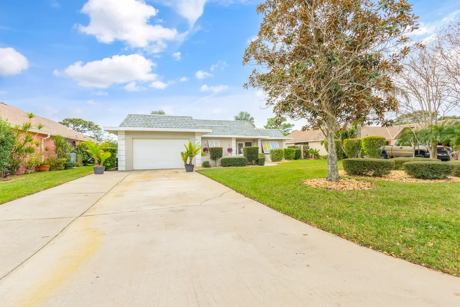 Don't miss this stylish 3 bedroom 2 bath home in desirable Suntree. Nestled within manicured landscaping, this stunning pool home offers a perfect blend of elegance, comfort, and leisure. The kitchen boasts granite countertops, stainless steel appliances, and ample cabinet space with a seated island. Whether you're entertaining guests or preparing a quiet meal for yourself, this kitchen is a perfect blend of style and functionality. French doors off the generously sized primary suite allow private access to the pool area with view to the fairways. The two additional bedrooms provide comfort and privacy in this split plan, perfect for a growing family or accommodating guests. Whole house hurricane shutters. Kitchen and baths renovated 2019. New roof 2019. New irrigation pump July 2021. New Lennox Signature Series AC/dehumidifier and pool pump Late 2021. Conveniently located near shopping,...