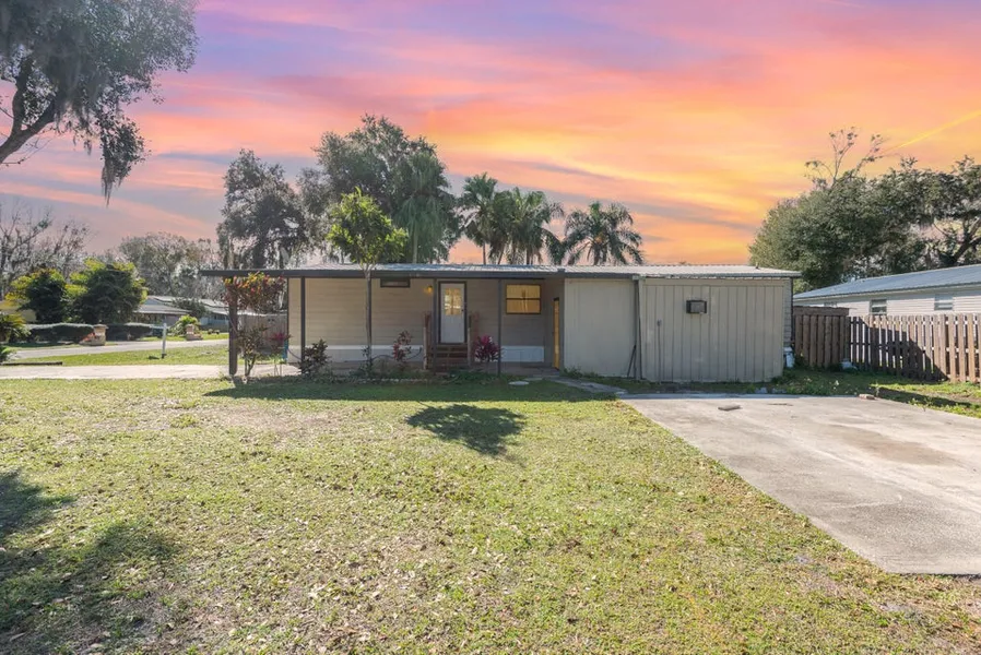 Nestled in a serene neighborhood just off SR46, this home offers tranquility with easy access to Orlando, Cocoa Beach, and Daytona. Situated on a .32-acre corner lot, the open floor plan seamlessly blends living and dining areas, with an extra eating space off the kitchen. Featuring a metal roof and a mix of carpet and wood laminate flooring, the spacious kitchen is perfect for culinary adventures. The master bath boasts a soaking tub and separate shower. Outside, a fenced backyard with a large gate accommodates RVs and boats, with a covered back porch leading to a generous deck. A workshop offers space for hobbies. With four bedrooms and two baths, this home invites you to embrace the Florida lifestyle.