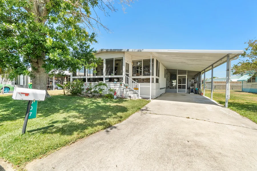 Experience the convenience of having it all in this centrally located home. This 55-plus community boasts the Hollywood Estates of West Melbourne, offering several amenities including a sparkling cool pool. This nicely updated two-bedroom, two-bath home features a kitchen with granite counters, soft-close cabinets, and stainless-steel appliances. The great layout maximizes every space, with walk-in closets in the bedrooms providing ample storage. A family favorite, the large sunroom with a window AC unit can seamlessly become part of the main home, flooding it with natural light. Easy-to-use roll-down hurricane panels adorn most windows. Enjoy proximity to shopping, restaurants, and beaches just 15 minutes away. Make your appointment today! Curtains/rods and aluminum fence do not convey.
