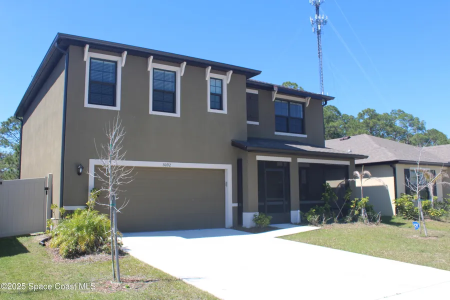 SELLER IS MOTIVATED! This Solar Power home was built in 2022 and has a 4.75% VA assumable loan for qualified veterans. This 5 Bedroom 3 full bath home has 2600 square feet of living. The first floor features an open concept with the kitchen island overlooking the dining and family room area. The five bedrooms are split between the two floors with a guest suite on the first floor and remaining bedrooms and laundry room on the second floor. The master bath features a walk- in shower, two walk in closet and double sinks. There is a large flex room on the second floor that can be used as a TV room or game room. The kitchen features stainless steel appliances, granite counter tops, breakfast bar, tile floor and pantry. The front porch has been screened in, and the backyard is fully fenced. The home backups to a natural preserve. With access to the community pool, savings on your power bill and a 4.75% assumable loan, you could not find a better value.