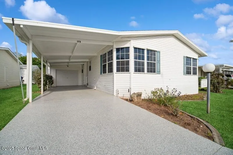 Beautiful peek-a-boo water view home in coveted 55 and older community Lost Lakes Community 55 and older. This home features nice open living space. Enjoy the sunrise from both the dining area and living room. One car garage. Has Polyurea Floor Coating on carport. Large primary bedroom with large bathroom sunken tub in addition to a shower. Screened in lanai, two bedrooms and an office. Utility room sink for convenience. Includes washer and dryer.