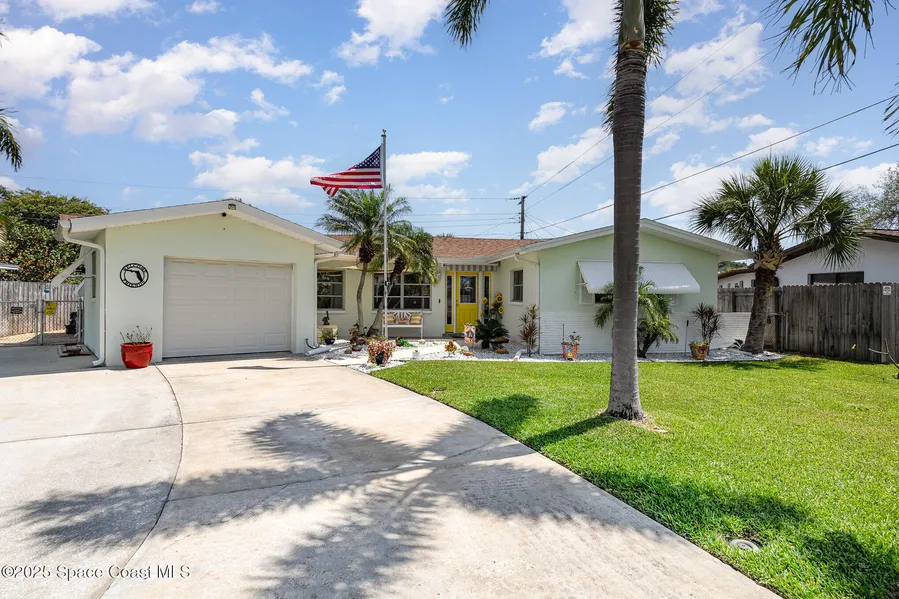 Charm & Pride of Ownership shine in this inviting Merritt Island Pool Home! This beautifully maintained 3-bedroom, 2-bathroom home offers the perfect Florida lifestyle. Enjoy outdoor living with a heated pool and covered, tiled lanai—perfect for unwinding or catching your favorite shows on the TV. Beautiful tropical landscaping, rock beds, gas-plumbed grill, and sealed paver patio make the outdoor space feel like your own private island getaway. A motorized, retractable lighted awning shades the entry-way, greeting you inside to a spacious living and dining area. Solid-surface flooring throughout- warm tile, luxury vinyl plank, and timeless terrazzo. 1-car garage, spacious storage shed, storm shutters & a well-planned drainage system for those rainy storm days. Centrally located 15 minutes to the beach, 45 minutes to Orlando International Airport, and near the new upcoming hospital. This...