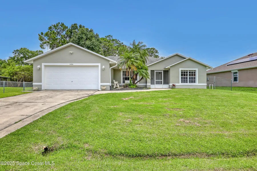 BRAND NEW ROOF!!! Move right into this spacious 4-bed, 2-bath home with a split floor plan, vaulted ceilings, and an open layout. Enjoy a large kitchen, separate dining and living rooms, and a versatile 4th bedroom perfect for an office. Both bathrooms are updated with tile, and interior laundry. Garage has a workbench and AC-ready space. Relax on the screened front or back patios-perfect for catching a cross breeze. The fenced backyard offers plenty of space for a pool, with direct guest bath access to the patio. Additional features: hurricane shutters, reverse osmosis system, newer well and sprinkler pump with timer, fresh paint, and sharp curb appeal. Home sits high to prevent flooding. City water. No HOA!