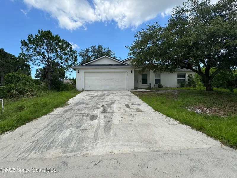 Short Sale to be approved by the lender - Come check out this Great Deal with valuable add-ons, such as a NEW ROOF and NEW SOLAR PANELS to eliminate those expensive energy bills. Welcome to your quiet sanctuary in Palm Bay, FL... This 3 bedrooms, 2 baths, and a 2 car garage sits on a spacious 1/4 acre parcel, where modern efficiency meets a family friendly design. This home has an open layout with kitchen cabinetry, breakfast bar and indoor laundry room. The master suite has a generous walk-in closet, and private master bathroom. Outside, a 10*10 trussed porch overlooks a large, privately fenced backyard (2019), with lots of space for a pool, boat, RV, or even a she-shed. This home is located on a quiet street, but its minutes from shopping and I 95 access -schedule a private tour today!