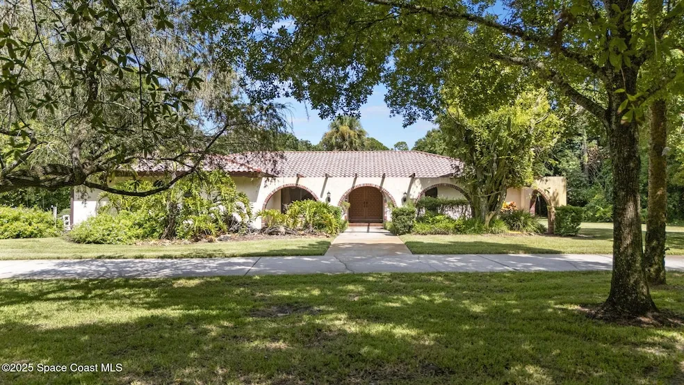 A rare 1-owner, Spanish-style ranch estate on 1.4 acres in West Melbourne! Built in 1978 and meticulously maintained, this 4-bed, 2-bath, 2,550 sq ft home is a true time capsule ready for cosmetic updates with solid bones already in place: 2022 A/C, 2016 water heater, new electrical panel, no cast iron plumbing, mid-life tile roof, and annual septic service (2 tanks). The stunning grounds feature mature trees, lush landscaping, a circle drive, and a long side drive ideal for an RV or boat. Inside, enjoy two sets of vanishing sliders, a fireplace, spacious bedrooms, and timeless architectural details. No HOA and tucked on a peaceful cul-de-sac just minutes to I-95, Hwy 192, shopping, dining, and only 8 minutes to Melbourne Airport. Investors will love the potential for a full renovation, while families can make it their dream home with sweat equity. A unique blend of vintage charm, space, and opportunity homes like this rarely come up!