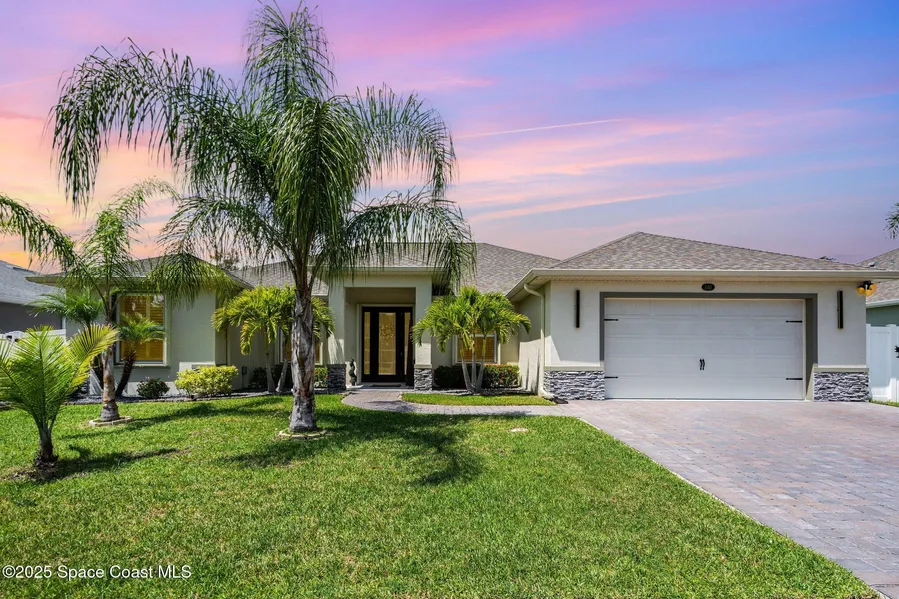 Only fourteen families get to call Hawks Ridge home. Behind the gates of this boutique enclave, this 2020 build offers privacy and ease across 4 bedrooms and 2,244 sq ft. Sunlit open plan and custom kitchen with quartz counters, island, soft close drawers, pull outs in the cabinets, and stainless steel appliances. Primary suite with two custom walk in closets, frameless shower, extended double vanity, and brand new carpet. Crown molding and custom laminate in main living and dining. Middle bedroom also has a walk in closet. Outdoor living shines on the oversized 34'6'' x 18' covered and screened porch. Fully fenced yard with a storage shed. Includes accordion hurricane shutters, Cat 5 patio screens, whole home water filtration, and exterior cameras with two floodlight units plus a Ring. Close to shopping, dining, parks, beaches, and key employers. Rarely available and ready for you.