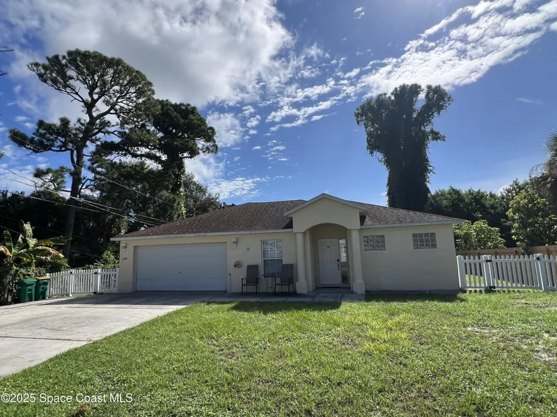 Tucked away on a quiet street in South Merritt Island, this move-in ready home offers recent updates and plenty of space. A new white vinyl fence (2025) adds curb appeal and privacy, while the HVAC was replaced in May 2025 for peace of mind. Inside you'll find fresh flooring, an open living area with natural light, a spacious kitchen with solid wood cabinets, and a split plan with comfortable bedrooms. The primary suite features a soaking tub, walk-in shower, and glass block window for added light. With no HOA, you'll have the freedom to park a boat or trailer, and the fenced yard is perfect for pets, entertaining, or simply relaxing under Florida skies. Ideally located near top schools, Cocoa Village, beaches, and rocket launches, this home is a strong choice for first-time buyers, investors, or anyone looking for a low-maintenance Merritt Island lifestyle.
