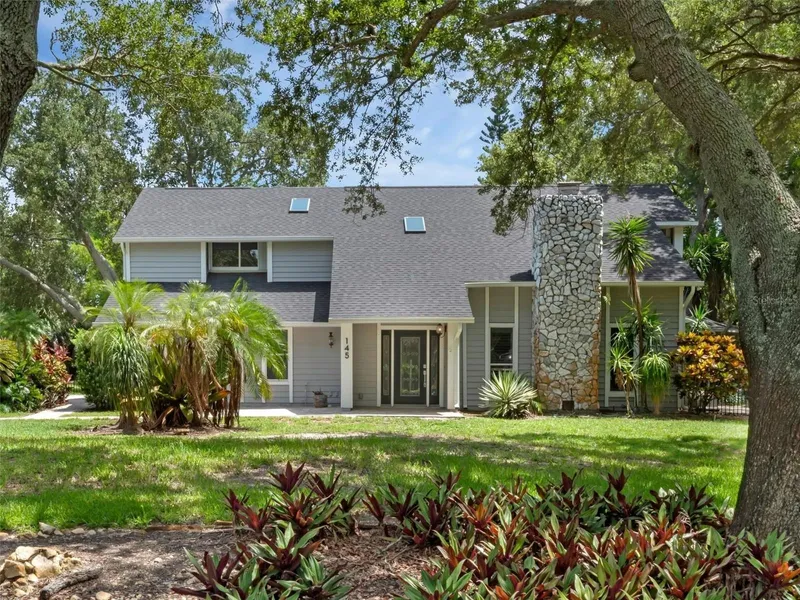 Under contract-accepting backup offers. Don't miss your chance to own a slice of paradise where every day feels like a getaway. Stunning 2,939 sq. ft. like-new home is in the coveted river-to-river Andy Estates, just off S. Tropical Trail, situated on 1 acre. Perfect combination of glamour and laid-back essence. NO HOA! Upon entering the estate, you'll immediately be in awe of the mature, yet meticulously maintained landscape that includes 12 mature oak trees complete w/custom 2V wired lighting. Home features 2 large primary suites, one upstairs and one downstairs, ideal for an in-law suite with access to the pool and garage. Total of 4 bedrooms, 3.5 bathrooms, a 2-car garage, and a new roof. Enjoy your morning coffee from the resort-style pool deck, 2nd floor balcony or front outdoor sitting area while overlooking the gorgeous grounds. Upon entering the home you'll step into the main living area with 1 of 2 wood-burning fireplaces, soaring vaulted ceilings open to the 2nd floor, comfy modern appeal and custom staircase complete with elegant glass pane rail. The kitchen features breakfast bar, granite counter-tops, coffee bar area, under cabinet lighting, stainless steel appliances and quaint sitting area overlooking the pool. Adjacent to the kitchen is the dining room elegantly finished with stacked-stone wall and chandelier. The 2nd floor primary suite, features a wood-burning fireplace, welcoming balcony, enchanting spa-like bathroom with frameless shower and sunset tub views and attached room perfect as a den, office, nursery, workout space, or convert it into the closet of your dreams. Completing the 2nd floor is a laundry space and two more bedrooms, one with en-suite bath. From the dining room, kitchen or in-law suite step out to the picturesque pool area overlooking the sprawling property offering suburb privacy. The outdoor space features a sitting area with TV hook-up, screened lanai, summer kitchen with Viking gas grill and fully secured turf dog-run complete with indoor and outdoor access. Other features include a whole house vacuum system, full home monitored alarm system, black iron fencing, paved boat/RV parking space and separate building/shed nicely finished to match the home. Even with all these features the home is further anchored by all high-end finishes. The home adorns bamboo wood flooring throughout, newer interior and exterior paint, custom quality wood features such vast storage under the stairs, vanities, and doors. With an expansive overhaul the home boasts 2019 hurricane shutters (upstairs and downstairs), 2019 pool heater (electric), 2019 electric panel, 2019 pool tile, pavers and resurfaced, 2020 septic tank, 2020 pool vacuum system, 2021 pool pump, 2021 HVAC, 2021 impact garage door, 2022 roof and gutters, 2022 skylight windows, and 2022 water heater. Even more, come see everything this gorgeous street has to offer, cul-de-sac road, only 8 homes, large estates, and community dock, you can buy into. The dock stretches into the Banana River for residents to enjoy fishing, water sports, watching sunrises, and rocket launches. Truly move-in ready and one you do not want to miss!
