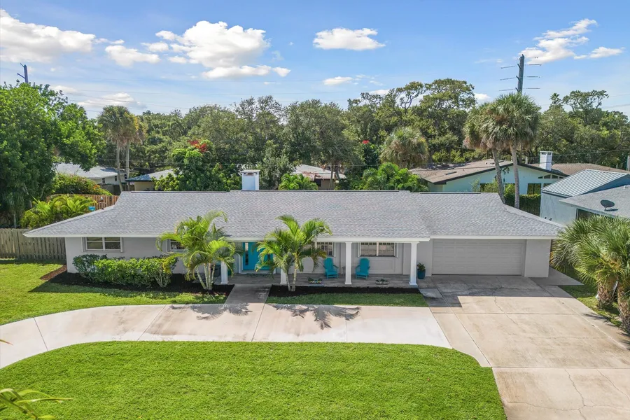 Live on the island in this beautiful mini-resort on Bahama Drive! This incredible home on an oversized .31 acre lot has everything you're looking for! Updated with 3 bedrooms and 2 baths with a separate laundry room and panty. Relax besides the electric fireplace with a drybar and wine fridge. Enjoy a custom tropical landscaped backyard with heated pool. Newly refreshed oversized back patio with a new epoxy surface. Hurricane accordion shutters, 2 hot water heaters, recessed lighting, sky lights and plenty of room on the side of house for a boat or RV. In the heart of Indialantic only minutes walk from the beach and river. This neighborhood has top rated schools and a new Publix, restaurants and shopping center 6 blocks away on A1A with everything you need! Roof 2019, HVAC 2022, Water Heaters 2024/2025. New backyard cedar wooden fence 2025