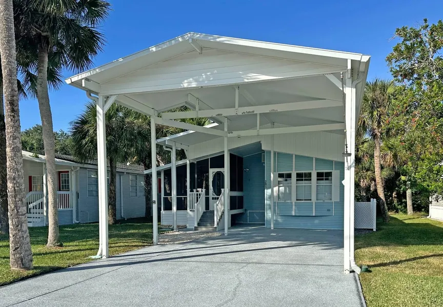 Looking to get out of those cold winters? Check out this adorable 2BR/1.5b park home ready for occupancy. The home features covered RV and car parking; all appliances included; separate laundry room and much more! Located in an exclusive gated community with a championship 18-hole golf course and many amenities including on site restaurants/bar, pickleball and tennis courts, 2 heated pools, 2 hot-tubs, fitness center, you can live in a care-free lifestyle where the low maintenance fees covers complete lawn and sprinkler system maintenance, 24-hour attended guardhouse with roaming Courtesy Patrol; water & sewer included; Spectrum internet cable DVR, daily trash pickup, miles of nature and walking trails, Doggie World, planned activities; Internet and cable tv, and an exchange library!! Centrally located on Florida's Space Coast and a short distance to Kennedy Space Center, Port Canaveral Cruise Terminals, Canaveral Sea Shore, Beaches, Orlando theme park attractions, Daytona Speedway and Orlando International Airport.