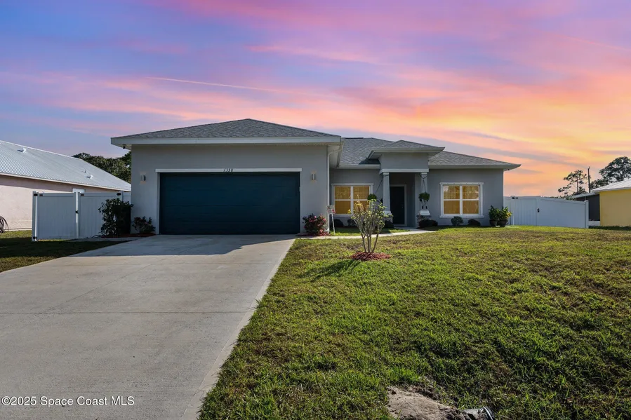 Beautifully maintained 4 bed, 3 bath CBS home in desirable SE Palm Bay featuring paid-off 2022 solar panels with a transferable 25-year warranty, keeping electric bills around $30/month. Fully fenced yard and screened, trussed back porch. Enjoy a true smart home with a Bolt Technologies security system, 6 cameras, window/door sensors, motion sensors, smart thermostat, electronic keypad entry, Ring doorbell, and Wi-Fi-enabled appliances including washer, dryer, and garage door opener. Home also includes 4 TV-mount-ready locations, HDMI in-wall wiring, and COAX ports. The kitchen offers granite countertops, solid wood 42'' cabinets with crown, and smart stainless steel appliances. The primary suite features a tray ceiling, dual closets, a soaker tub, and a tiled walk-in shower. Guest bedrooms include a shared bath with a granite countertop and a tiled tub/shower combo. Move-in ready with modern finishes throughout!