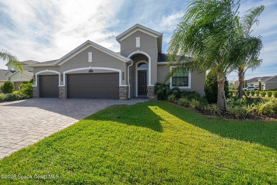 Welcome to 7776 Millbrook, a stunning home located in the heart of the planned community of Viera, Florida, where thoughtful design meets everyday comfort. This spacious property features 4 bedrooms plus a private office within the primary suite, 3.5 bathrooms, and a 3-car garage, all designed to offer luxury, flexibility, and functionality. Upon entry, you're greeted by an elegant, oversized foyer highlighted by wide tile planks with a natural wood finish. Throughout the home, enjoy custom high-end lighting, designer accent walls, and zebra shutters with 100% blackout capability. Storage is exceptional, with closets throughout and a dedicated glass wine wall adding both practicality and charm. The kitchen serves as the heart of the home, offering a large island, high-end Samsung appliances, stylish backsplash details, and sleek finishes, making it perfect for entertaining or everyday li...
