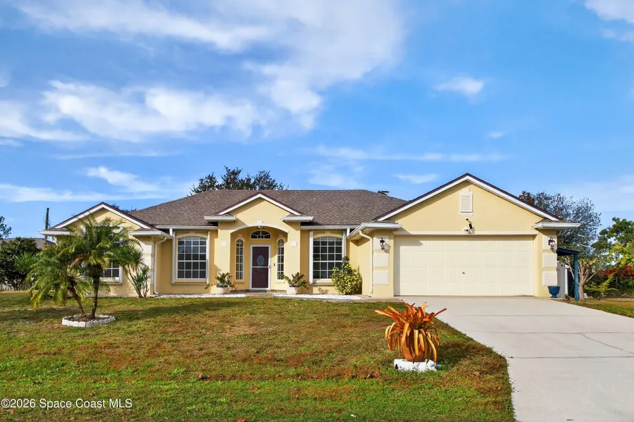 Spacious and inviting single-family home located in Southwest Palm Bay. This well-maintained property sits on a 0.46-acre lot, offering plenty of outdoor space for entertaining, gardening, or future improvements. The open floor plan provides a comfortable flow for everyday living and gatherings with family or friends. The kitchen offers a functional layout with ample cabinet space and room for meal prep. Four bedrooms and two full bathrooms provide flexibility for family, guests, or a home office. Enjoy the convenience of being close to schools, shopping, dining, and major roadways. This move-in-ready home is perfect for a primary residence or investment opportunity - don't miss your chance to make it yours!