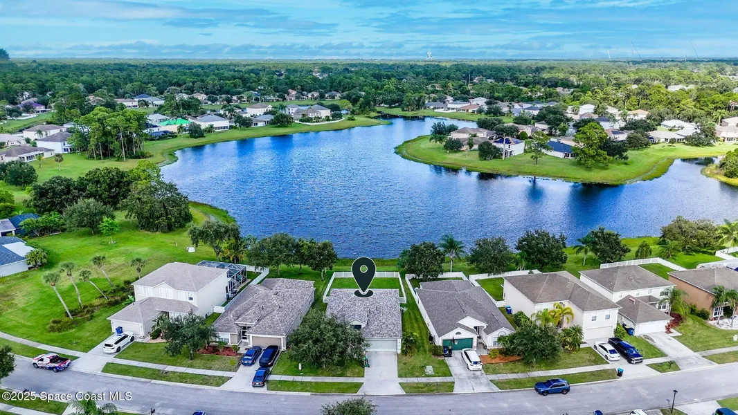 NEW ROOF, NEW HVAC, New Electric Stove, Remodeled Kitchen, with Lakefront Views in Palm Bay's Gated Bridgewater at Bayside Lakes! Discover this stunning lakefront home in the exclusive, gated community of Bridgewater at Bayside Lakes! Move-in ready, this home offers breathtaking views and a lifestyle that blends comfort, elegance, and Florida charm. Step inside to an open-concept floor plan featuring a spacious formal living and dining area, tile flooring throughout, and a bright family room overlooking the lake. The remodeled kitchen boasts new countertops,newer appliances including a brand-new electric stove, perfect for cooking and entertaining. Sliding glass doors open to a large, epoxy-finished patio (2025) that spans the entire back of the home, ideal for relaxing, dining, or hosting gatherings. Additional upgrades include a new garage door opener, accordion security shutters, ensuring comfort and peace of mind year-round.