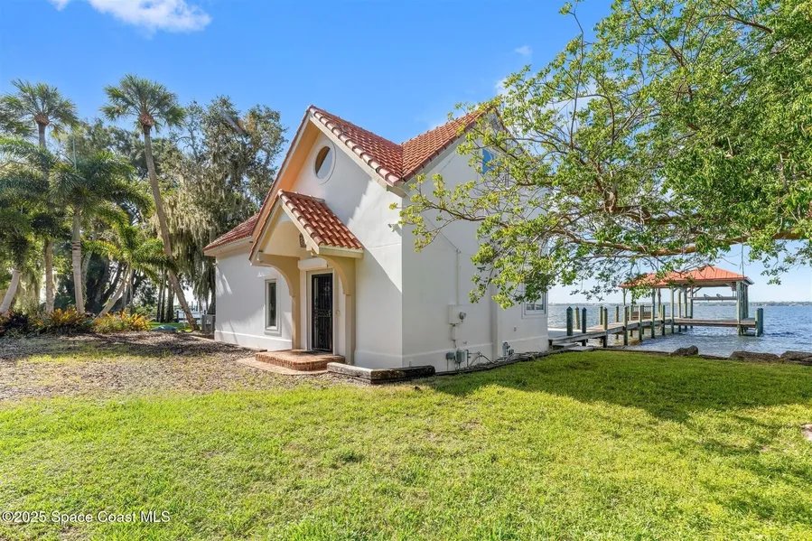 This beautiful waterfront home on South Tropical Trail combines convenience and outdoors, perfect for any watercraft lovers! The flexible floor plan has three bedrooms or a bonus room with a wet bar, three full baths, and a master suite downstairs. A newly installed deep-water dock provides direct access to the Indian River and Mathers bridge. High end cabinetry, premium finishes, and luxury appliances elevate the kitchen and living areas. Features include 12'' on-center floor joists for dramatic stability, tile roof, high-efficiency spray foam insulation, and tankless gas water heater. All conventional windows have electric hurricane shutters, with unique windows protected by Lexan panels. Additional amenities: instant kitchen beverage hot water, in-floor safe, and trash compactor. Enjoy tranquil outdoor living, energy efficiency, and picturess sunsets. Perfect for entertaining or relax...