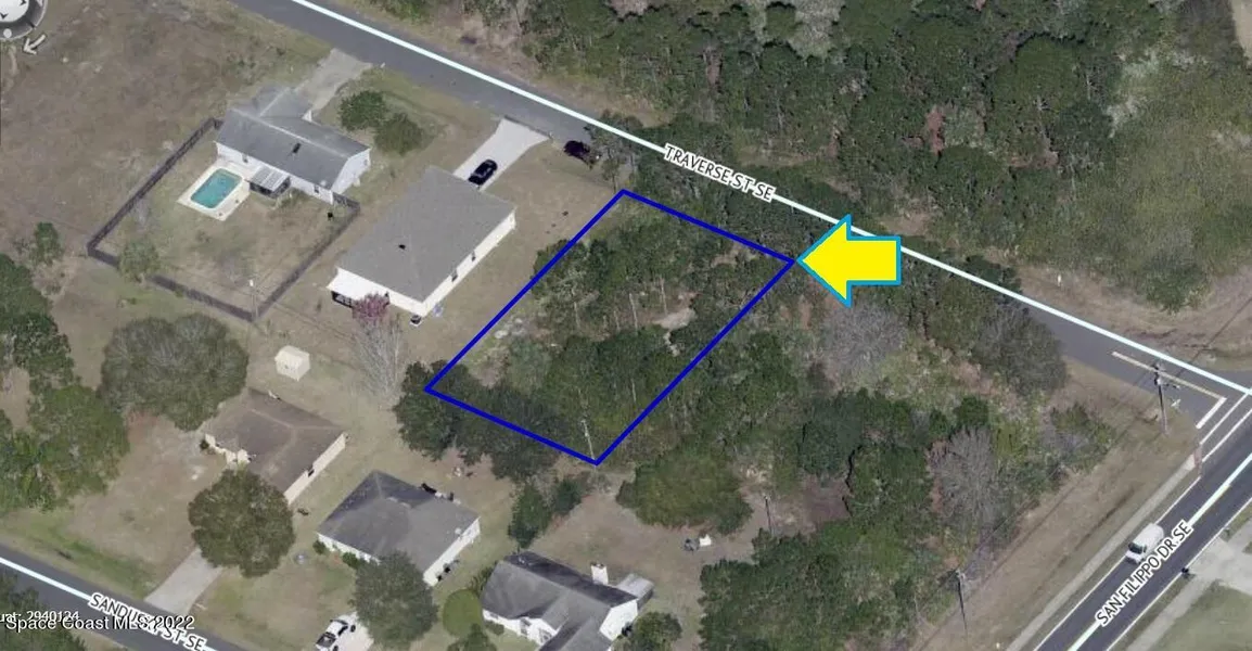 0.23 acre buildable residential lot available in Port Malabar Unit 18 of Palm Bay. Located in the southeast section, this lot is just 1.9 miles - 4 minutes to Columbia Elementary School, 2.9 miles - 7 minutes to the Publix Supermarket, 11.3 miles - 27 minutes to Melbourne Airport, and 16 miles - 28 minutes to the beaches of Indialantic. From exit #173 of I-95 go west on Malabar Road for .2 miles, left on San Filippo Drive for 3.8 miles, and right on Traverse Road. The lot will be on your left.