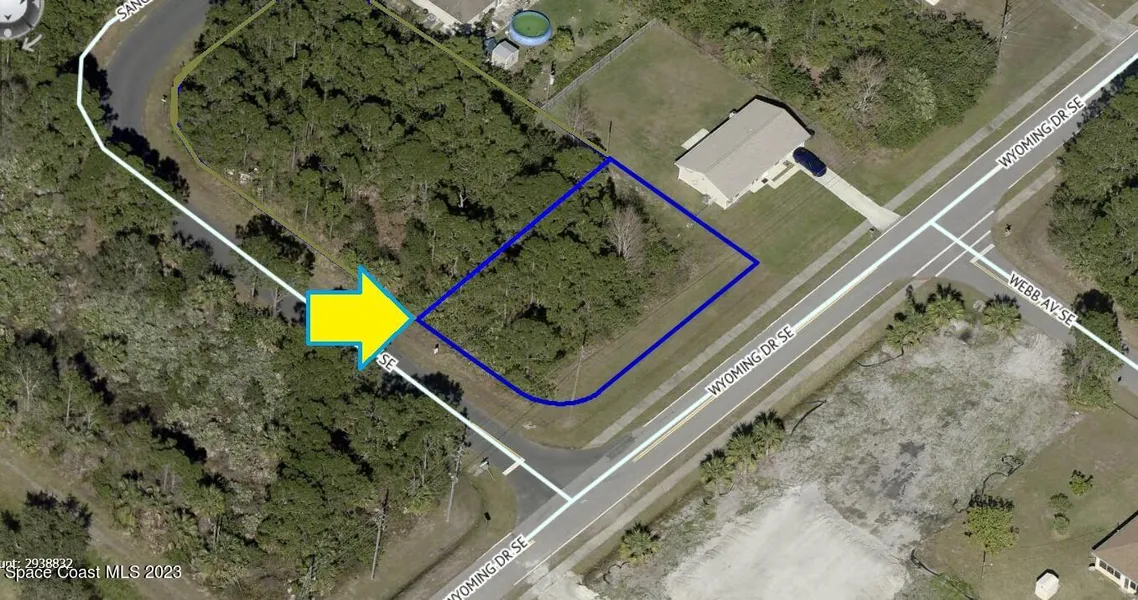 One of 3 side-by-side adjacent lots available in Port Malabar Unit 17 of Palm Bay (the others are 2035 & 2065 Tahoe). Located in the southeast section, this 0.25 acre buildable residential corner lot is just 2.1 miles - 5 minutes to the Publix Supermarket, 2.5 miles - 6 minutes to Columbia Elementary School, 11.7 miles - 23 minutes to Melbourne Airport, and 13.9 miles - 28 minutes to the beaches of Indialantic. From exit #173 of I-95 go west on Malabar Road for .2 miles, left on San Filippo Drive for 3.3 miles, right on Wyoming Drive for 1.2 miles, and right on Tahoe Avenue. The lot will be on your right on the corner with Wyoming Drive.