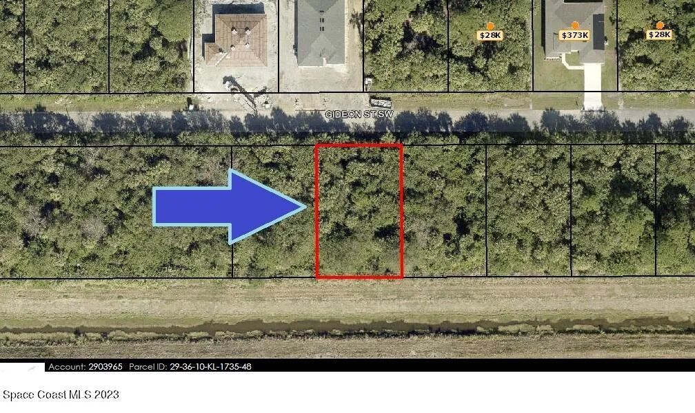 Two of Two side-by-side adjacent buildable single family residential lots [Rs2 Zoning] available in Port Malabar Unit #36 of Palm Bay. Nicely located in the SW section with a drainage right-of-way easement canal in the back, these lots are just 5.6 miles -13 minutes- to Publix Shopping, 4.4 miles -9 minutes- to Bayside High and Westside Elementary Schools, 10.8 miles -25 minutes to the Melbourne Square Mall, and just 16.1 miles -33 minutes to the beaches in Indialantic. From Exit #176 of I-95 go west on Palm Bay Road NE. Turn right on Minton Road and proceed south for 3.3 miles. Turn right on Malabar Road and proceed west 1 mile. Turn left on Garvey Road. Go 1.3 miles and turn right on Harper Boulevard SW. Proceed 1.2 miles and turn left on Natroma Avenue and right on Gideon Street SW.