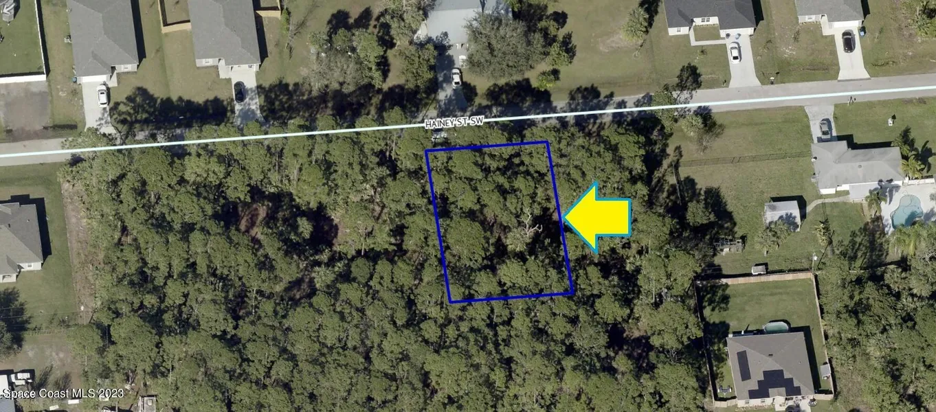 0.23 acre buildable residential lot available in Port Malabar Unit 37 of Palm Bay. Located in the southwest section, this lot is just 2.1 miles - 6 minutes to Jupiter Elementary School, 2.9 miles - 8 minutes to the Winn Dixie Supermarket, 12.3 miles - 28 minutes to Melbourne Airport, and 15.4 miles - 35 minutes to the beaches of Indialantic. From exit #176 of I-95 go west on Palm Bay Road for .7 miles, left on Minton Road for 2.5 miles, right on Malabar Road for 1.0 mile, left on Garvey Road for 1.3 miles, right on Harper Boulevard for .4 miles, left on Schomer Avenue for .1 mile, and left on Hainey Street. The lot will be on your right.
