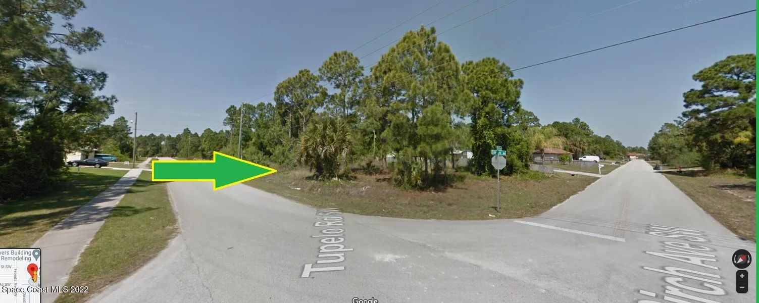 Oversized 0.29 acre [Corner] buildable single family residential lot available in Port Malabar Unit #20 of Palm Bay. Nicely located in the SW section, this lot is just 0.5 miles -2 minutes- to Jupiter Elementary School, 5.5 miles -12 minutes- to Publix Shopping, 9.6 miles -23 minutes- to the Melbourne Square Mall, and just 16.1 miles -32 minutes- to the beaches in Indialantic. From Exit #176 of I-95 go west on Palm Bay Road NE. Turn left on Minton Road and proceed south for 1.7 miles. Turn right on Americana Boulevard and Proceed 1.9 miles. Turn Left on Jupiter Boulevard and proceed 1 mile. Turn right on Walpole Road SW, Left on Tilhal Road SW, Right on Tupelo Road SW and right on Birch Avenue SW. The lot is on the left side of the road.
