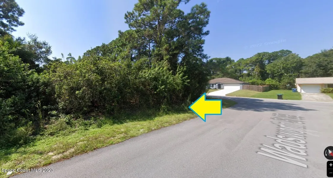 0.27 acre buildable single family residential **Corner** lot [Rs2 Zoning] available in Port Malabar Unit 15 of Palm Bay. Located in the southeast section, this corner lot is just .8 miles - 3 minutes to Columbia Elementary School, 3 miles - 8 minutes to the Publix Supermarket, 10 miles - 25 minutes to Melbourne Airport, and 15 miles - 27 minutes to the beaches of Indialantic. From exit #173 of I-95 go west on Malabar Road for .2 miles, left on San Filippo Drive for 2.0 miles, right on Waffle Street for .2 miles, road turns right and becomes Yale Avenue. The lot will be on your right at the southeast corner with Wadsworth Street.