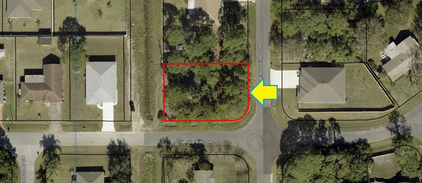 0.24 acre buildable residential lot available in Port Malabar Unit 20 of Palm Bay. Located in the southwest section, this corner lot has a drainage canal in the real allowing more privacy, and is just 1.5 miles - 4 minutes to Jupiter Elementary School, 2.7 miles - 8 minutes to the Winn Dixie Supermarket, 15.3 miles - 24 minutes to Melbourne Airport, and 15.1 miles - 34 minutes to the beaches of Indialantic. From exit #180 of I-95 go west on US-192 for .5 miles, left on St Johns Heritage Parkway for 6.1 miles, left on Malabar Road for 1.8 miles, right on Hurley Boulevard for .3 miles, left on Sapulpa Road to the corner with Wendover Road. The lot will be on your left on the northwest corner.