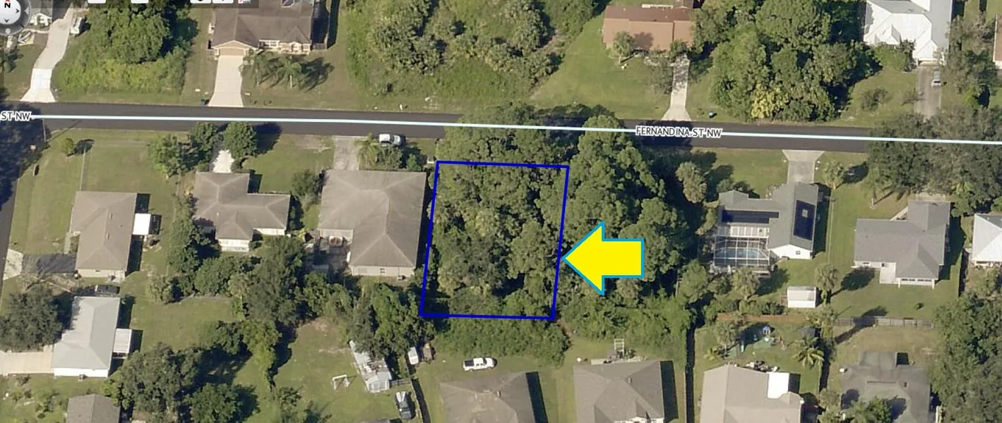 One of 2 side-by-side adjacent lots available in Port Malabar Unit 13 of Palm Bay (the other is 532 Fernandina). Located in the northwest section, this 0.23 acre buildable residential lot has city water and sewer available, and is just 1 mile, 3 minutes to McAuliffe Elementary School, 2.9 miles - 8 minutes to the Publix Supermarket, 9.3 miles - 21 minutes to Melbourne Airport, and 12.3 miles - 28 minutes to the beaches of Indialantic. From exit #176 of Palm Bay go west on Palm Bay Road for .7 miles, left on Minton Road for 1.7 miles, right on Americana Boulevard for .4 miles, right on Avocado Road for .1 mile, and left on Fernandino Street. The lot will be on your left.