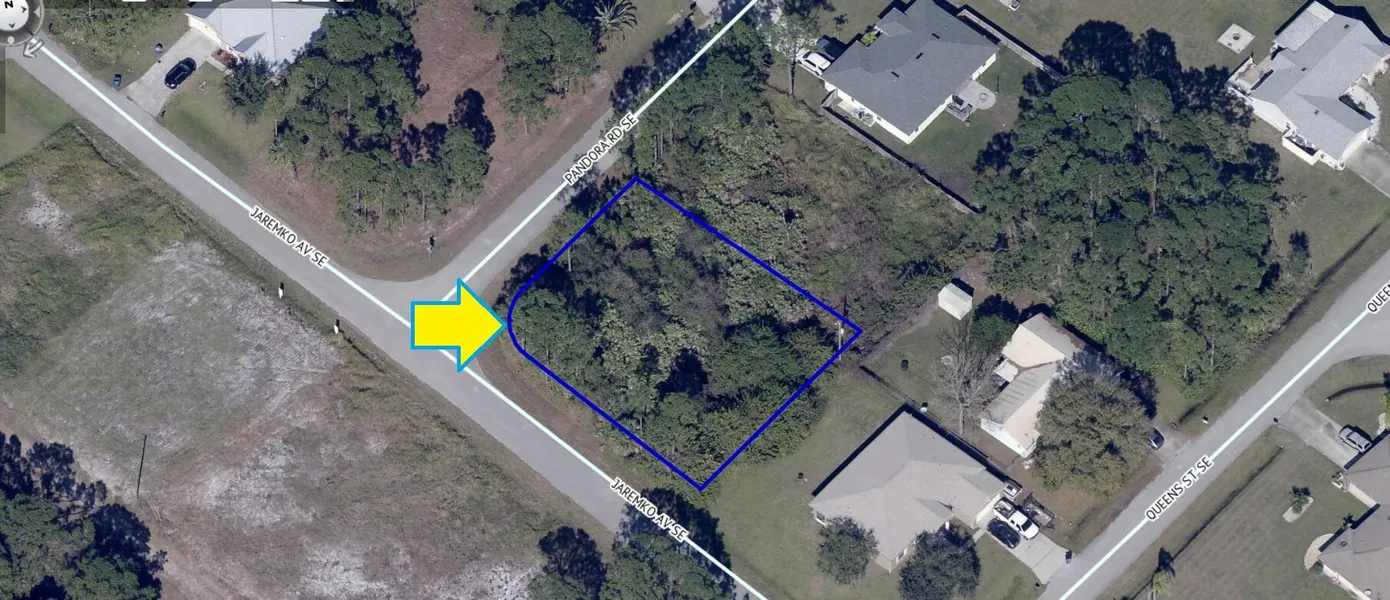 0.30 acre buildable residential lot available in Port Malabar Unit 22 of Palm Bay. Located in the southeast section, this corner lot is just 2.9 miles - 7 minutes to the Publix Supermarket, 5 miles - 10 minutes to Bayside High School, 12.7 miles - 29 minutes to Melbourne Airport, and 17.6 miles - 31 minutes to the beaches of Indialantic. From exit #173 of I-95 go west on Malabar Road for .3 miles, left on San Filippo Drive for 4.8 miles, right on Eldron Boulevard for .5 miles, and left on Pandora. The lot will be on your left on the southeast corner with Jaremko Avenue.