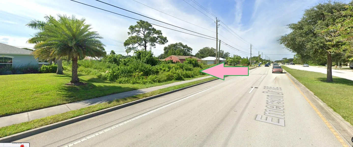 0,23 acre buildable residential lot available in Port Malabar Unit 11 of Palm Bay. This lot has City Water available and sidewalks on this major artery, and is just 2.2 miles - 5 minutes to the Walmart Supercenter, 10.4 miles - 24 minutes to Melbourne Airport, and 12.5 miles - 29 minutes to the beaches of Indialantic. From exit #173 of I-95 go west on Malabar Road. Turn left on San Filippo Drive SE and proceed south for 0.5 miles. Turn right on Jupiter Boulevard SE and proceed for 0.9 miles. Turn left on Emerson Drive and the lot will be on the right hand side of the road.