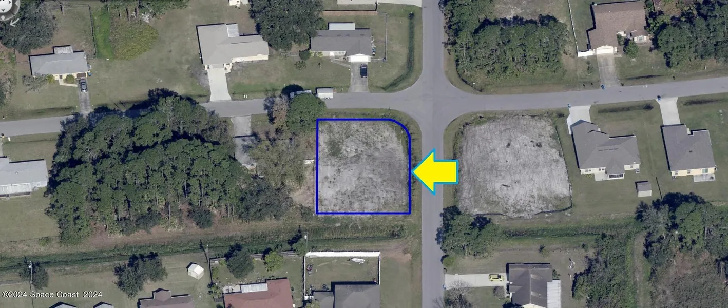 The southwest corner lot is a .25 acre buildable residential lot in Port Malabar Unit 20 of Palm Bay. Located in the southwest section, this lot has a drainage canal in the rear allowing more privacy, and is just 1 mile - 4 minutes to Jupiter Elementary School, 1.4 miles - 4 minutes to the Winn Dixie Supermarket, 10.7 miles - 23 minutes to Melbourne Airport, and 13.8 miles - 30 minutes to the beaches of Indialantic. From exit #176 of I-95 go west on Palm Bay Road for .7 miles, left on Minton Road for 2.5 miles, right on Malabar Road for 1.1 miles, and left on Santa Rosa Avenue for .3 miles. The lot will be on your right at Trilby Road on the southwest corner.