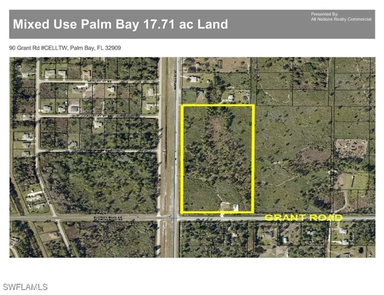 Developers Special!!! Corner 17.71 acres of land North East Corner of Babcock and Grant Road in Palm Bay (next to Melbourne, FL). $26,000 annual Income from cell phone antenna!