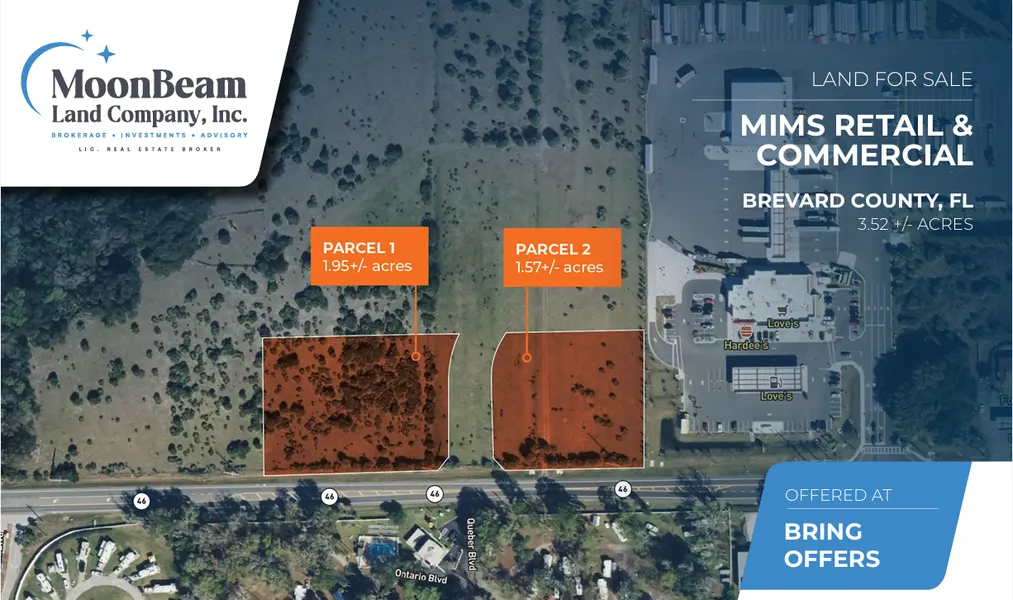 MoonBeam Land Company presents two premier commercial retail lots in the rapidly growing Mims area of Brevard County, Floridaa prime destination for low-density commercial and retail development. Positioned just 1,000 feet west of the I-95 & HWY 46 intersection, these parcels offer exceptional visibility, accessibility, and long-term investment potential.