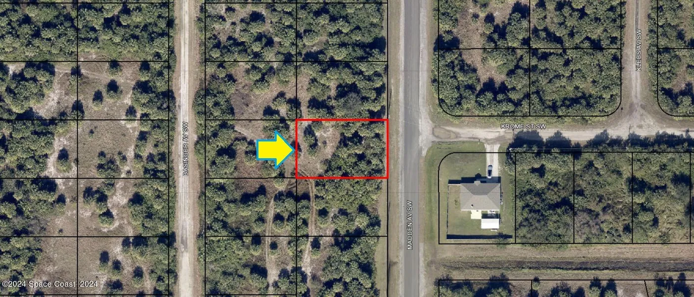 It's a .23 acre buildable residential lot with powerlines at the street available in Port Malabar Unit #49 of Palm Bay. Located in the southwest section, this lot is just 1.4 miles - 4 minutes to Bayside High School, 2.7 miles - 7 minutes to the Publix Supermarket, 14 miles - 30 minutes to Melbourne Airport, and 17.1 miles - 37 minutes to the beaches of Indialantic. From exit #176 of I-95 go west on Palm Bay Road for .7 miles, left on Minton Road for 3.3 miles, right on Jupiter Boulevard, quick left on DeGroodt Road for 2.5 miles, right on JA Bombardier Boulevard for .9 miles, and left on Madden Avenue. The lot will be on your right in .3 miles. Owner will only consider (a) a full price offer, and (b) a closing AFTER 01/02/2026 (this is for tax purposes).