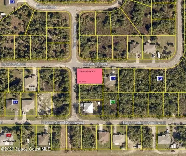 Build your dream home in one of Palm Bay's fastest-growing areas! This desirable location is surrounded by new construction and newer paved roads, reflecting the strong momentum and investment in the neighborhood. The area requires a minimum of 1,800 sq ft under air, helping to maintain quality construction standards and protect long-term property values. Enjoy a convenient lifestyle just minutes from Bayside High School, Westside Elementary, and the highly popular Bayside Lakes commercial district, featuring Publix, Walgreens, Dunkin, Starbucks, restaurants, a Health First medical facility, and more. A quick 10-minute drive up San Filippo brings you to the bustling Malabar Road corridor with additional shopping, dining, banking, and easy I-95 access. Take a drive by and see the potential for yourself-this is an excellent opportunity to build in a thriving, well-located community.