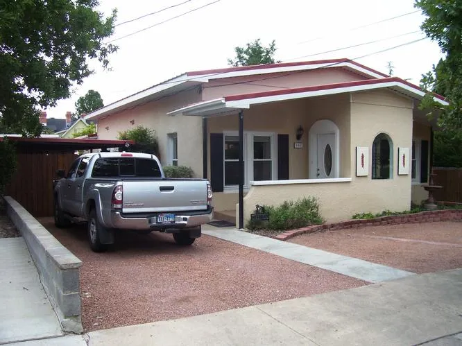 Located near downtown and the university, this 2 bedroom, 2 bath stucco home offers low maintenance and warmth for any new buyer. Property includes 1,543 sq.ft. residence with a 529 sq.ft. apartment in back, 6 storage buildings, and xeriscaped yard with sprinkler system in front and back. Home has been remodeled with new vinyl double pane windows, new plumbing and electrical throughout, and new metal roof. All walls have been re-sheetrocked, textured and painted. Residence offers a formal foyer, cozy living room with gas log fireplace, separate sitting area, office space, formal dining room, and spacious bedrooms. Master bedroom has attached bathroom and enormous walk-in closet and storage space. Back yard is an oasis with several fruit trees, shade trees, sidewalks, grill area, two covered patios, and two wash sinks. Extras include a 2 car carport, central heat & air, cedar fence, kitchen appliances, and well insulated. Call for an appointment today!